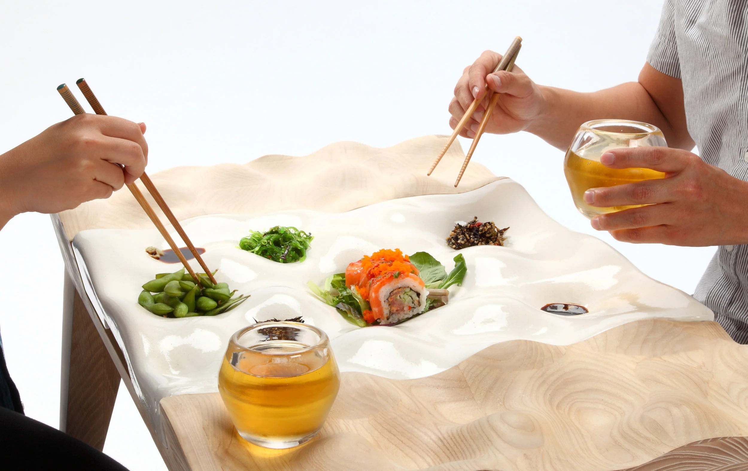 The term "Hapa" is a colloquial expression and is used as a slang in my home town, Honolulu, Hawaii, meaning "half" when referring to people of mixed race. This table blends new paper clay body technology with traditional woodworking techniques